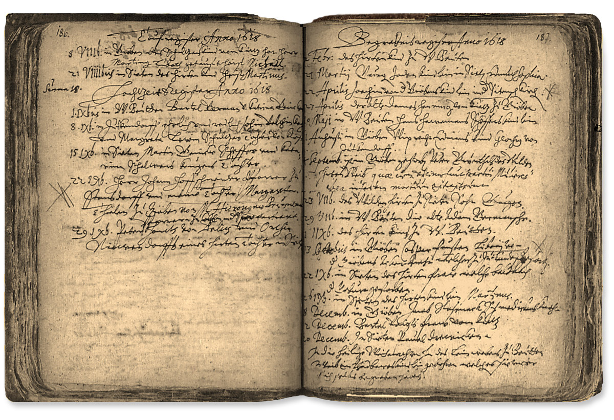 Seiten 186 und 187 aus dem Jahr 1618